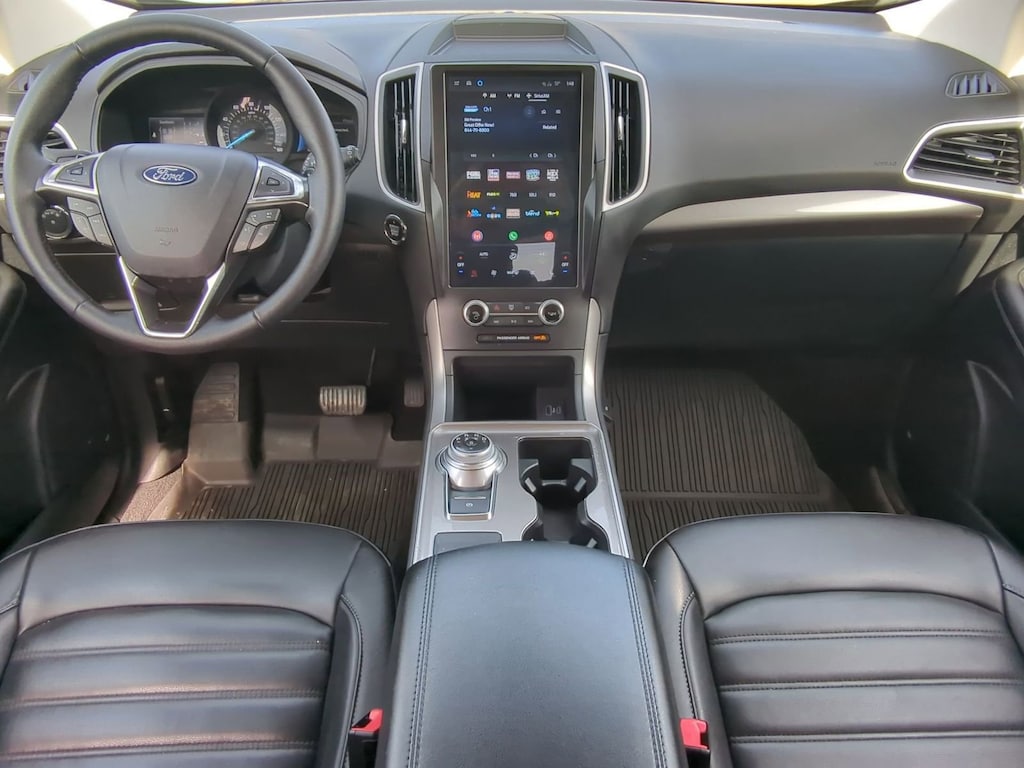 The interior of the 2024 Edge SEL is a true sanctuary, featuring ActiveX Trimmed Heated Bucket Seats, a Leather-Wrapped Steering Wheel, and a SYNC 4A Infotainment System with Enhanced Voice Recognition. The spacious cabin and versatile cargo area make this SUV the perfect companion for your daily commute, weekend adventures, and everything in between.